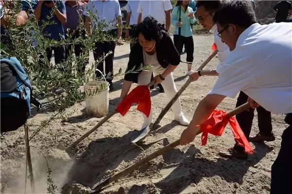 祥宇公司李董事長與報道團的記者在示范園里親手合栽了一棵油橄欖樹,在此次的武都行種下了一顆友誼樹,結(jié)下了一份橄欖情。