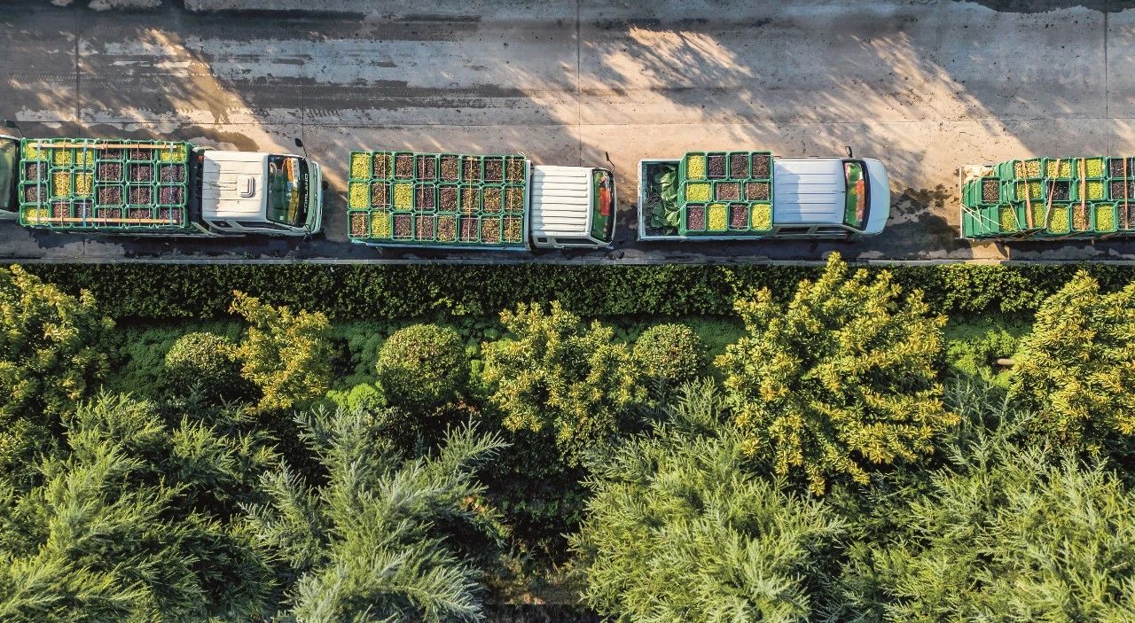 甘肅省隴南市各村油橄欖種植專業(yè)合作社的車隊滿載油橄欖,有序送往祥宇公司。
