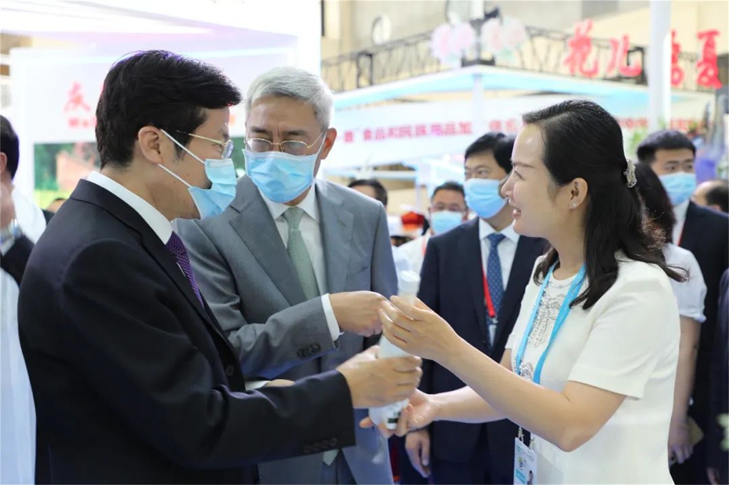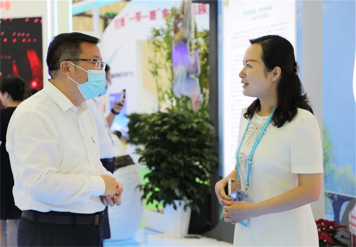 省市領(lǐng)導(dǎo)走進(jìn)隴南館,祥宇公司董事長劉玉紅邀請各位領(lǐng)導(dǎo)品鑒了祥宇系列產(chǎn)品,