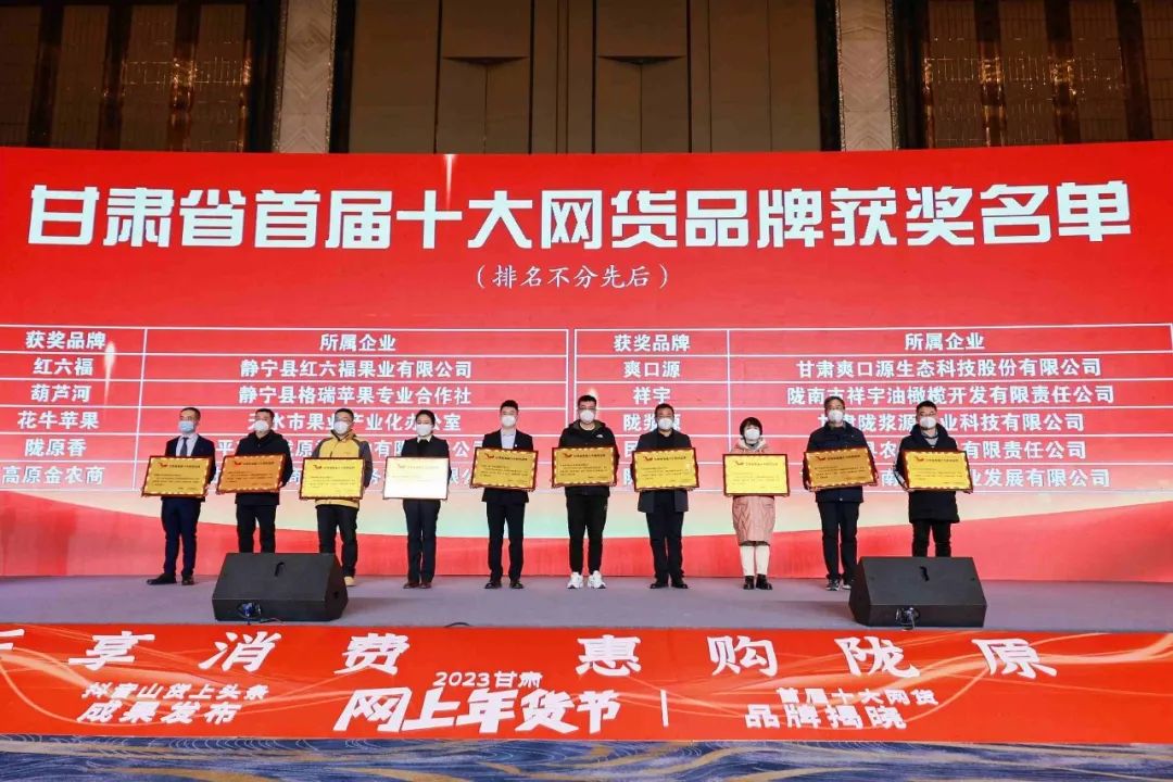 2023甘肅年貨節(jié)活動正式啟動,活動現(xiàn)場宣布“甘肅省首屆十大網(wǎng)貨品牌”評選結果,并現(xiàn)場為獲獎企業(yè)頒獎 。